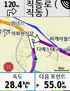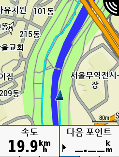 네비게이션 기능은 UI가 불편해서 쓰기 어렵더라구요. 중요한 지점들을 미리 저장해놓고 (집, 반GS, 터미널 등등) 그곳들을 찾도록 하는건괜찮습니다. 주변 편의점이나 식당 등 POI 검색해서 찾아갈때에도 그럭저럭 쓸만하고요. 하지만, 정확한 명칭이나 주소를 직접 입력해서 찾는다거나 하는 부분은 너무 불편합니다. 전화번호 검색도 뭔가 잘 안되고요.. 이 네비 부분의 UI나 UX는 와후 Elemnt가 훨씬 편한것 같습니다. (와후는 지도가 안좋은게 문제..)