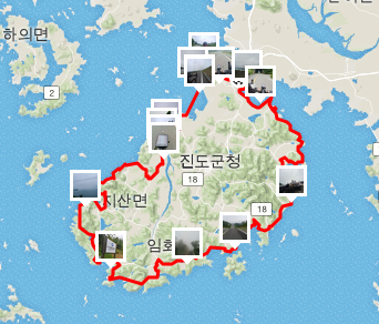 덕분에 생전 처음 계획도 없이 가본 진도와 해남 라이딩을 매우 즐겁게 마칠수 있었습니다. 아래는 이 기능들을 이용해서 돌아본 해남과 진도.. 아무데나 주차하고, 동그라미 대충 그려 코스 만들고, 바로 라이딩.. ㅋㅋㅋ