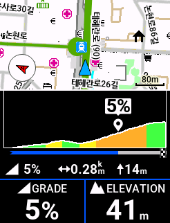 아래 사진은 역삼령.. 강남역에서 역삼역으로 가는 길에 클라임 프로가 오르막이라 판단하고 자동으로 이런 클라임 프로 화면을 보여줍니다. 오르막이 무서운 우리 로뚱족에겐 정말 좋은 기능인 것 같습니다.